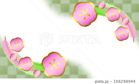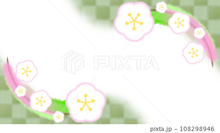 梅の花と市松模様の和風モダンな背景イラスト【16:9】