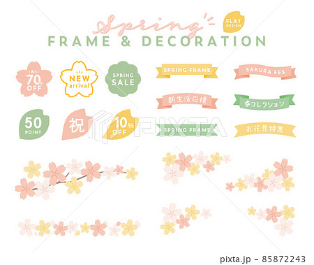 シンプルな春のフレームセット 桜 さくら 飾り 背景 装飾 あしらい かわいい イラスト 花 リボン
