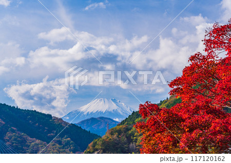 【神奈川県】丹沢湖 湖畔の紅葉 富士山遠望