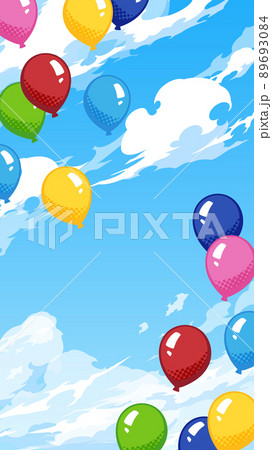 アメコミ風のバルーンリリースの背景_風船と空のフレーム_16:9_縦