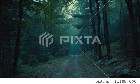 Dark and Eerie Landscape with Fog