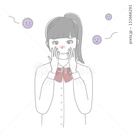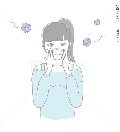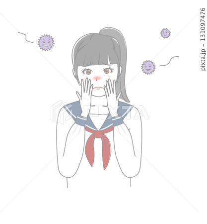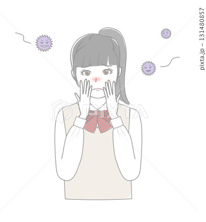 くしゃみをする女の子 小学生 風邪を引く女の子