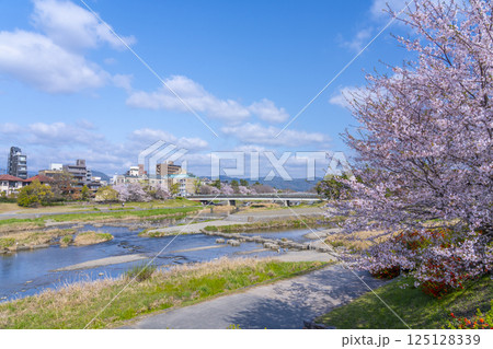 京都・鴨川・春・桜・(丸太町橋からの眺め)