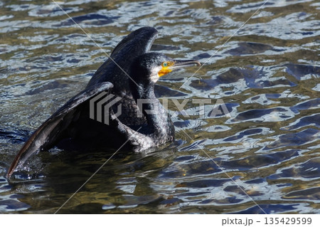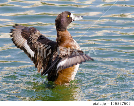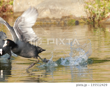 キンクロハジロの羽ばたき 水面から飛び立つ瞬間の野鳥