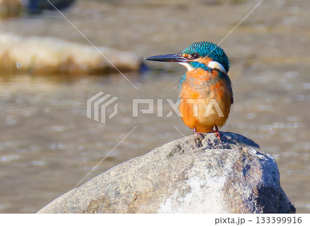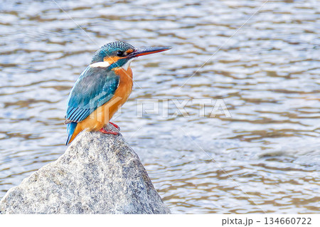 岩の上で獲物を狙うカワセミ雄