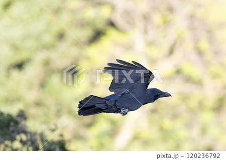 グリーンバックに悠然と飛ぶハヤブサ成鳥