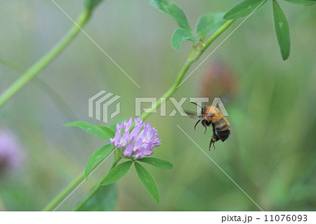 生き物 昆虫 クローバーに近づくセイヨウミツバチ