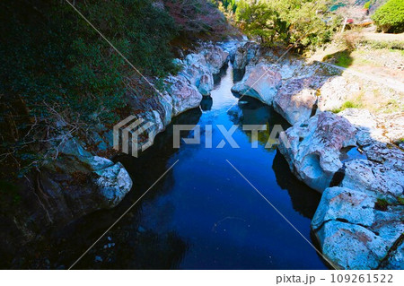 天高く肥ゆる秋、十一月の九州、中津、耶馬渓、猿飛千壺峡をさんぽ、秋空に渓谷が映える
