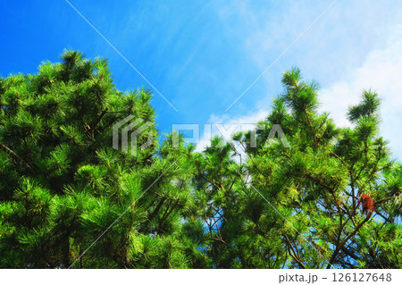千葉県浦安市墓地公園付近の防砂林と青空の風景