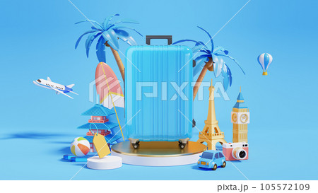 Isometric young girl at the airport and waiting for her flight, documents, suitcases and things for travel and travel