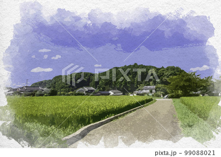 水彩画風 飛鳥坐神社の杜 飛鳥の神奈備 奈良県明日香村