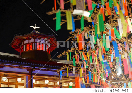 愛媛県松山市の観光名所「道後温泉」にある飛鳥乃温泉と七夕の風景