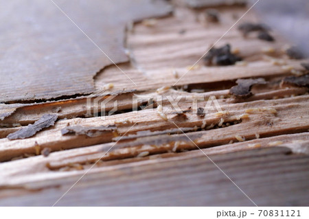板を食べるシロアリ(ヤマトシロアリ)