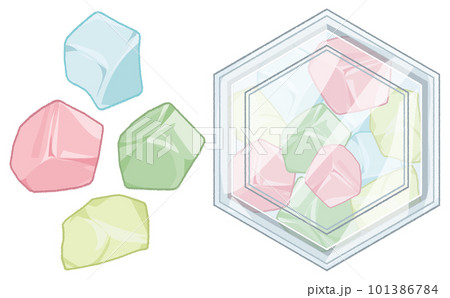 光が透過して透明感のある色とりどりの琥珀糖 カラフルな宝石 キラキラ