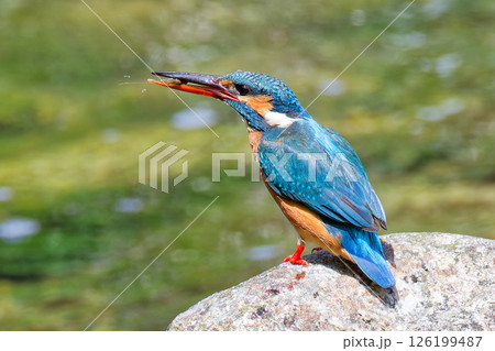 餌を食べるカワセミ