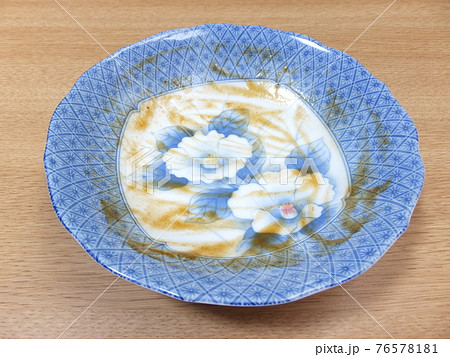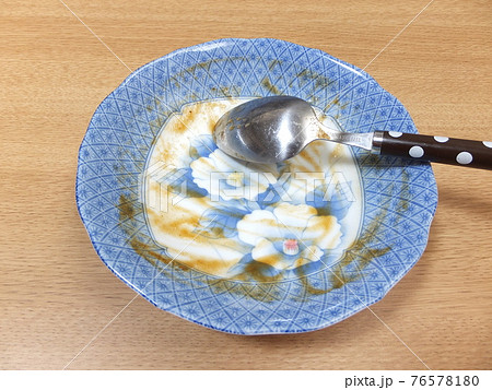 食器洗いの前に皿の汚れを拭く カレーライスを食べ終わった皿