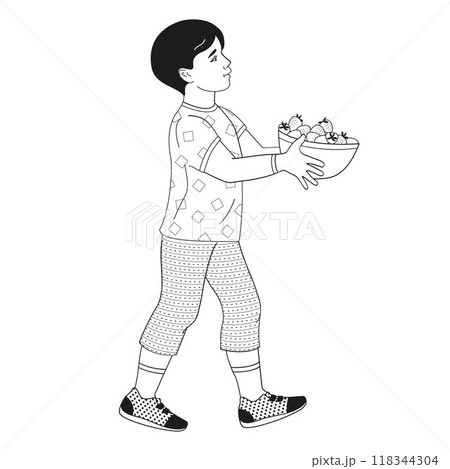 Little cute boy refuses to eat healthy vegetables, Children do not like to eat vegetables, Nutrition healthy eating habits for kids concept, Children do not like to eat vegetables.