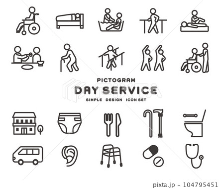 デイサービスに関するピクトグラムアイコンのベクターイラスト素材/介護