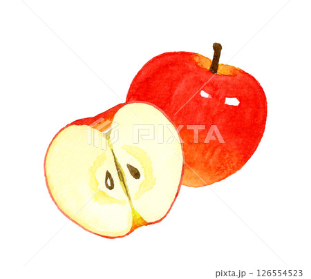 半分にカットしたりんご フルーツの手描き水彩イラスト素材
