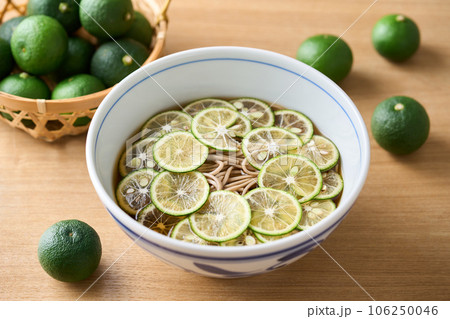 素麺桶に盛り付けたそうめん 夏イメージ (俯瞰撮影)
