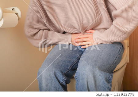 お腹が痛くて用を足す女性