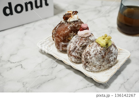 カフェのデザートセット アイスクリームとクリームサンド菓子