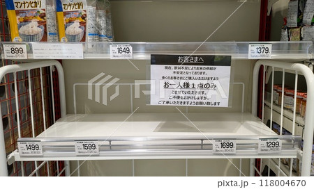 米不足で米が売り切れているスーパーの棚
