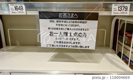 米不足でお米がないスーパーの棚