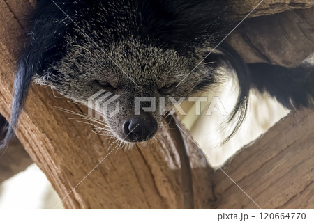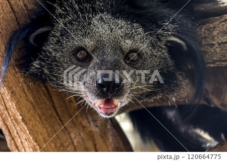 木登り名人のビントロングの顔、別名クマネコ【ジャコウネコ科】
