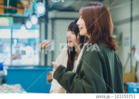 魚市場を楽しむ女性たち 撮影協力 ・ピアbandai