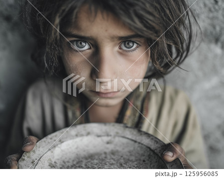 飢えと貧困を訴える子どもの表情。社会問題・国際支援のイメージ素材