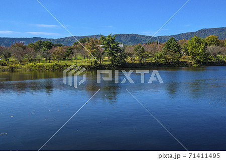 信州 長野県飯山市秋の長峰スポーツ公園の針湖池