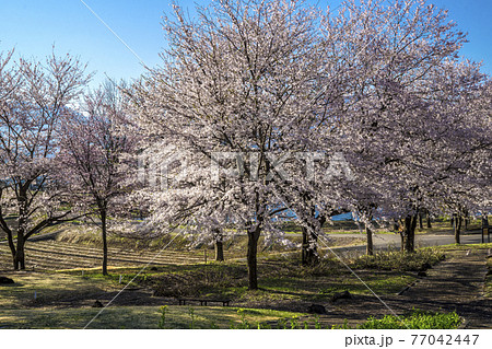信州 長野県飯山市春の長峰スポーツ公園の桜