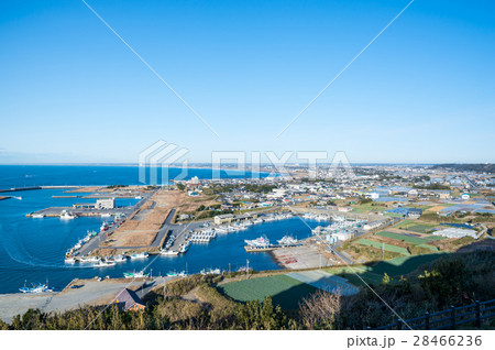(千葉県旭市)飯岡刑部岬展望館から望む飯岡漁港