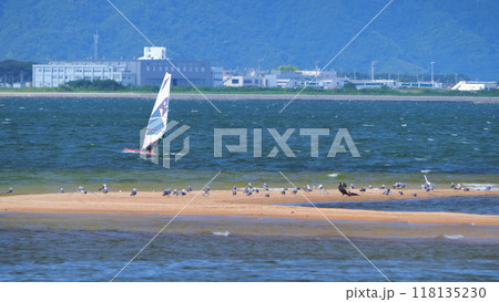 爽やかな中海 飯梨川河口の風景 清潔感のある癒やし写真