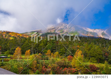 秋の御岳ロープウェイ山頂駅から中央アルプスを臨む