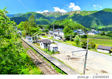 JR大糸線 飯森駅付近より白馬五竜スキー場方面を望む(長野県白馬村)【2025.6】