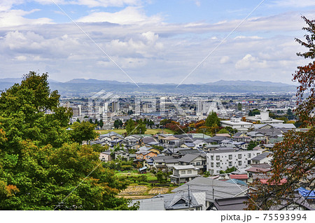 福島県会津若松市飯盛山のさざえ堂広場付近の石段から西側の市街眺望