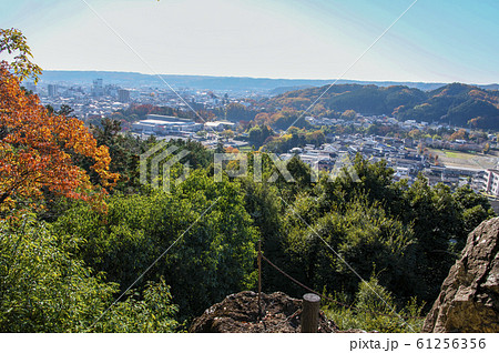 紅葉の天覧山 岩場から望む飯能市街