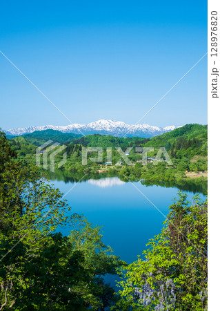 白川湖と飯豊連峰(5月)