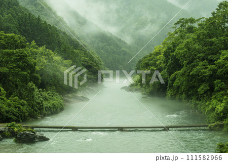 櫛田川 浮沈橋と川の風景 霧に包まれる川 新緑と川 三重県の観光スポット 下剋上球児ドラマロケ地