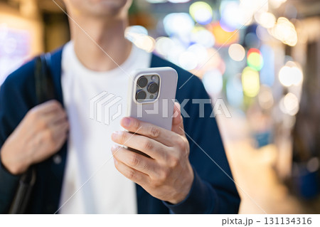 街でスマホを持つ男性