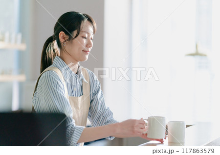 カフェ店員 撮影協力:Creadisce(丸善雄松堂株式会社)