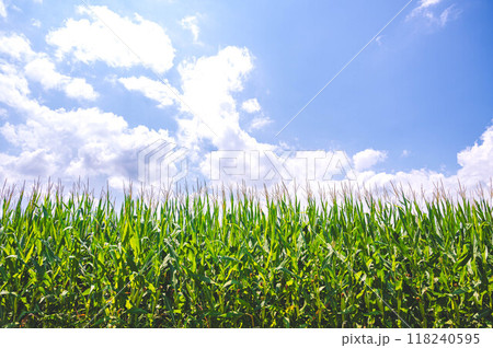 真夏の北海道今金町でデントコーン畑の風景を撮影