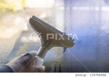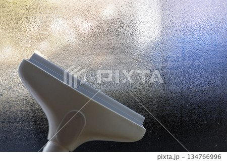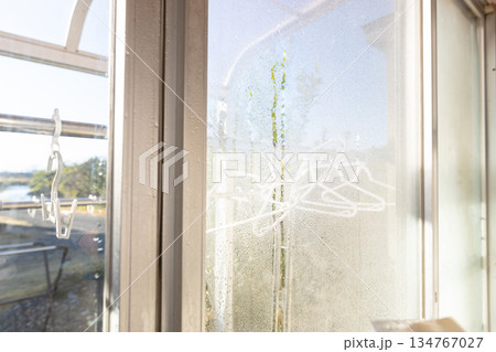 結露しているサッシ窓の素材写真