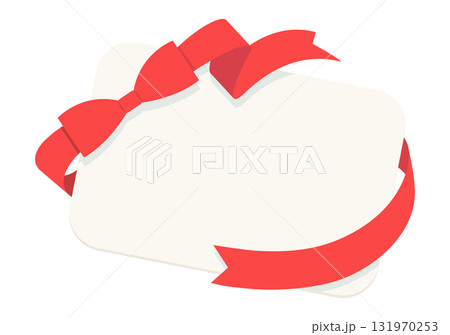 斜めになっている角丸の白いボードに、赤いリボンが巻き付いているイラスト