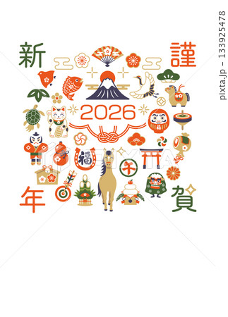 2026年 午年 和モダンな縁起物の年賀状