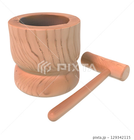冬の正月や秋のお月見の団子を餅屋で餅をつく木製の臼と杵