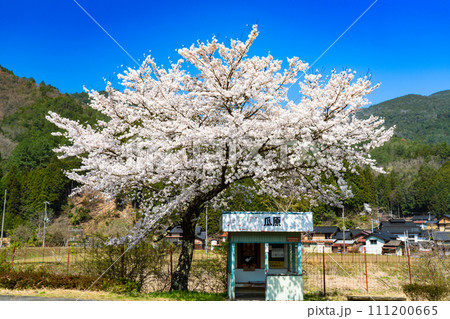 【重要伝統的建造物群保存地区】大屋町大杉 レトロなバス停とソメイヨシノと集落2 兵庫県養父市