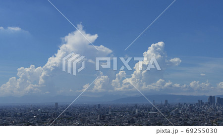 入道雲と名古屋都市風景、夏の終わりイメージ